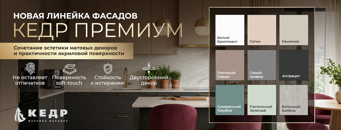 - мебельные фасады, профили, кромки и ручки;