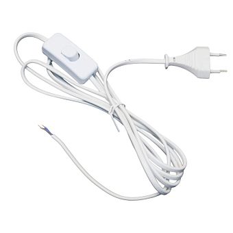 Сетевой шнур 220В, 3,0м ШВВП 2х0,5мм² с вилкой и выкл. (1,0м от вилки), белый