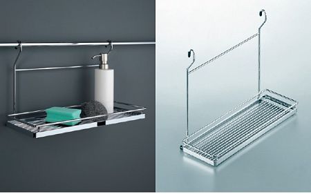 Полка универсальная с 2 крючками, Линеро, 280x145x270мм, цвет: ХРОМ глянцевый (0080470005)