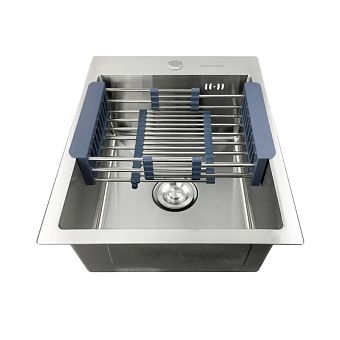 Мойка 50х50 см декор толщина 3,0 х 0,8/200 мм сифон с переливом + корзина