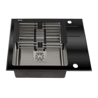 Мойка 60х50 см универсальная, черное стекло + нержавеющая сталь, толщина стекла 8 мм ,глубина