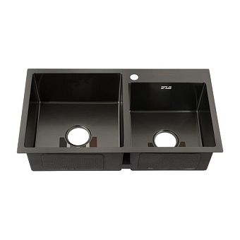Мойка двойная графит 78х43 см 3,0 х1 мм/200 мм сифон с переливом + корзина