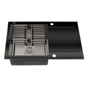 Мойка 78х50см универсальная, черное стекло + нержавеющая сталь, толщина стекла 8 мм ,глубина 2