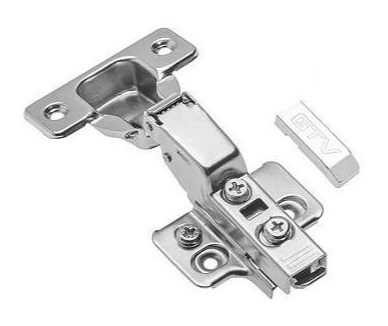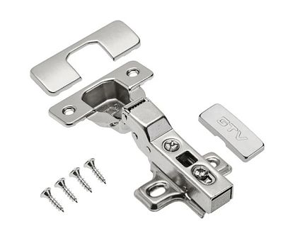 Петля GTV PRESTIGE Clip-On полунакладная 102°, с монт. планкой H0, декор. накладки, саморезы, с доводчиком