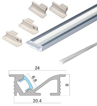 Комплект алюм. профиль ВСТР. 2409Е, СЕРЕБР. 3м, 24х9мм, молочн. диффузор, 2+2 заглушки