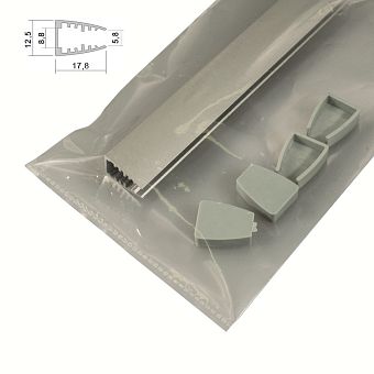Комплект алюм. профиль НАКЛ. ГИБКИЙ 1804L СЕРЕБР., 2м, 18х4мм, молочн. диффузор, 2+2 заглушки, 4 клипсы