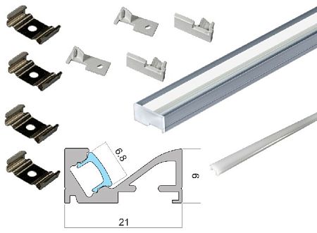Комплект алюм. профиль НАКЛ. 2109Е, 3м, 21х9мм, молочн. диффузор, 2+2 заглушки, 4 клипсы