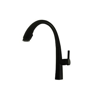 Смеситель д/кухни С-обр. гусак МАГНУС черный,с фиксацией на жестком изливе, нерж.сталь304, арт 91119