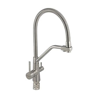 Смеситель д/кухни С-обр. гусак МАГНУС с краном питьевой воды. нерж.сталь 91114