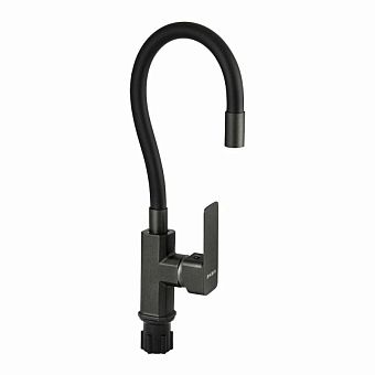 Смеситель д/кухни с гибким черным изливом FABIA корпус квадратный, цвет ГРАФИТ арт.9657