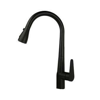 Смеситель д/кухни С-обр. гусак МАГНУС черный,с двойным выпуском воды, нерж.сталь304, арт 91118
