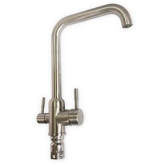 Смеситель д/кухни Г-обр. гусак МАГНУС с краном питьевой воды. нерж.сталь 91115