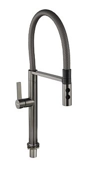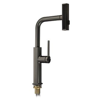 Смеситель д/кухни МАГНУС Г-образный излив вытяжной, корпус из латуни, графит