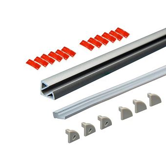 Комплект алюм. профиль УГЛОВОЙ 1616 ЧЕРНЫЙ, 3м, 16х16мм, молочн. диффузор, 3+3 заглушки, 6 клипс