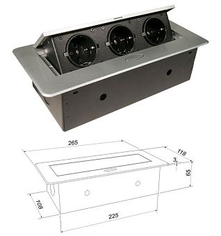 Блок розеток выдвижной прямоуг. 12А, 3 поста, серебр., провод 1,8м с вилкой