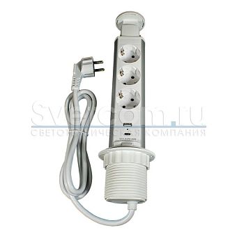 Блок розеток выдвижной круг. d60мм, 16А, 3 поста, серебр., провод 1,8м с вилкой