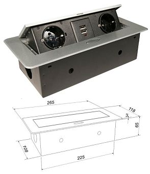 Блок розеток выдвижной прямоуг. 12А, 2 поста, 2USB, серебр., провод 1,8м с вилкой