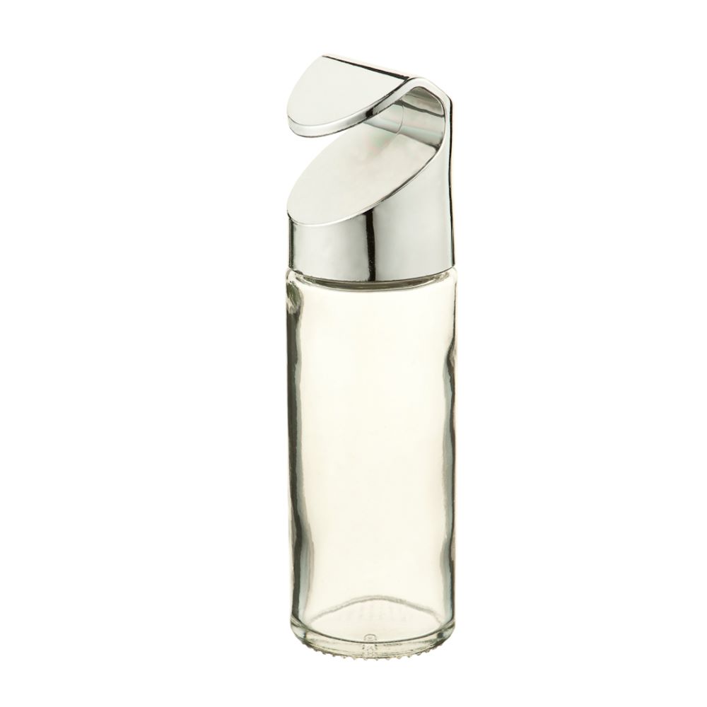 Стеклянная навесная баночка для хранения сыпучих продуктов и специй оснащена специальной крышкой, благодаря которой баночка легко крепится на трубе рейлинга.
