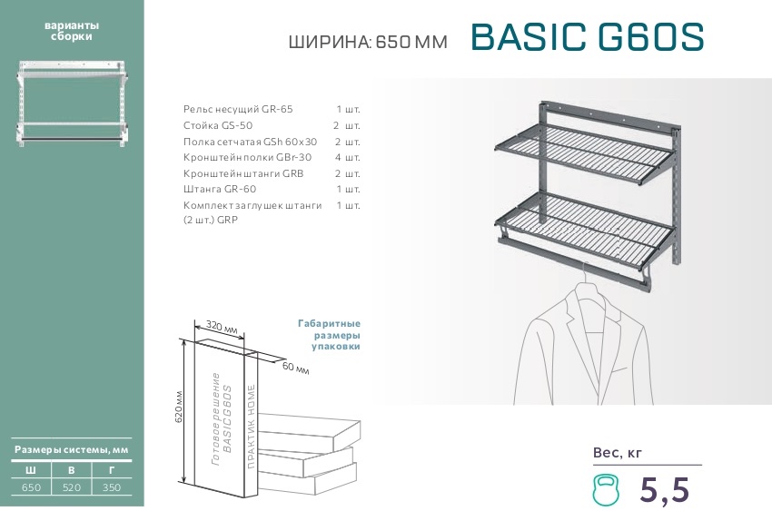 Полка сетчатая ПРАКТИК Home GSh 60х30 белая - 2 шт.