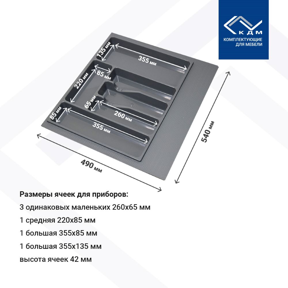 Лоток для столовых приборов М600мм, 532х485мм, серый