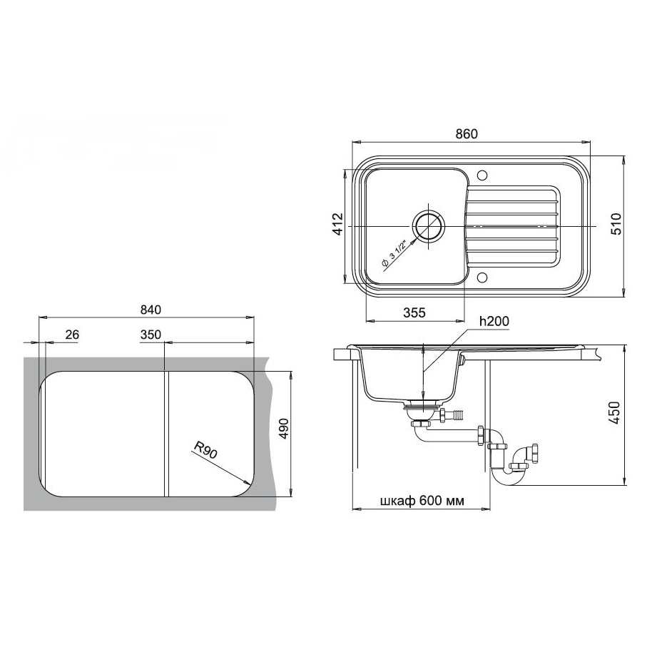 Общий размер мойки