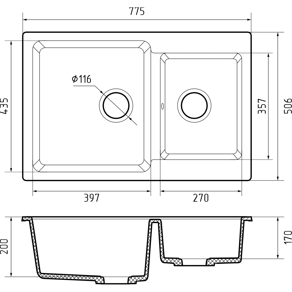 Модель кухонной мойки P-780K для тех кто любит стиль, комфорт и конечно же для ценителей функционала. Дополнительная чаша позволит Вам многое: это и размораживать продукты, и в отдельной чаше промывать зелень и овощи, и замачивать посуду без ограничения пользования водой в другой чаше мойки. Можно подобрать цвет для любого кухонного гарнитура. Радиус скругления внутренних углов чаши обеспечит лёгкий уход. Безопасный и экологически чистый продукт. Повышенный комфорт. Стильный дизайн. Высокое качество. Высокие потребительские характеристики: ударопрочность, гидрофобность, шумопоглащение, стабильность формы и геометрии, идеальное прилегание к столешнице.