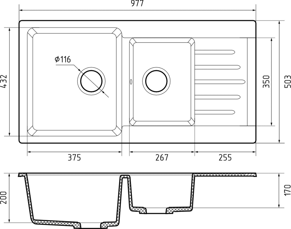 Модель кухонной мойки P-980KL для тех кто любит стиль, комфорт, функционал, ну и конечно же для большой кухни и для большой семьи это супер-вариант. Дополнительная чаша позволит Вам многое: это и размораживать продукты, и в отдельной чаше промывать зелень и овощи, и замачивать посуду без ограничения пользования водой в другой чаше мойки. А крыло мойки позволит сушить посуду. Можно подобрать цвет для любого кухонного гарнитура. Радиус скругления внутренних углов чаши обеспечит лёгкий уход. Безопасный и экологически чистый продукт. Повышенный комфорт. Стильный дизайн. Высокое качество. Высокие потребительские характеристики: ударопрочность, гидрофобность, шумопоглащение, стабильность формы и геометрии, идеальное прилегание к столешнице.