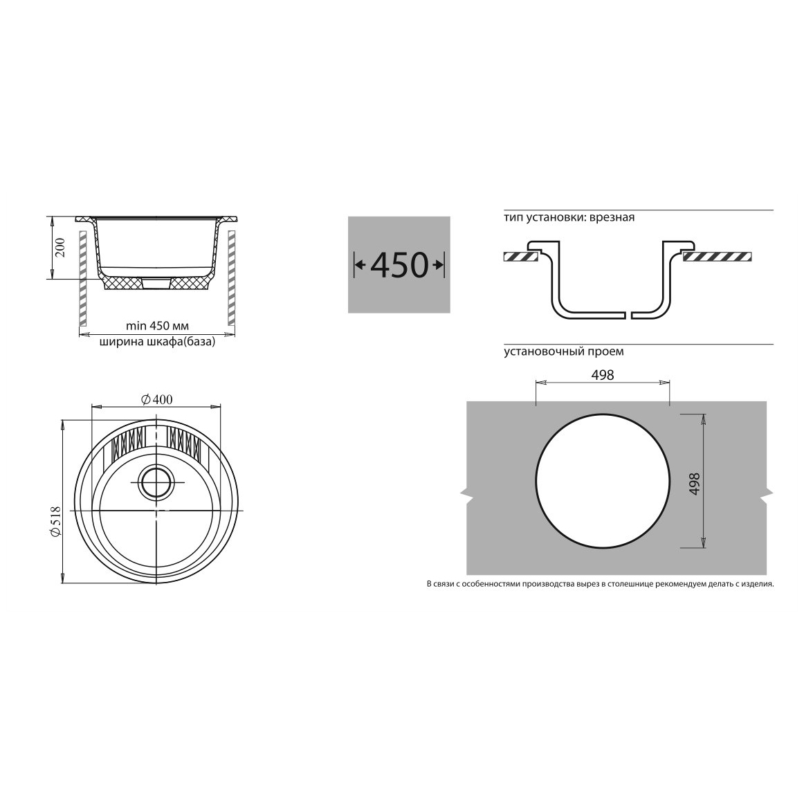 Общий размер мойки