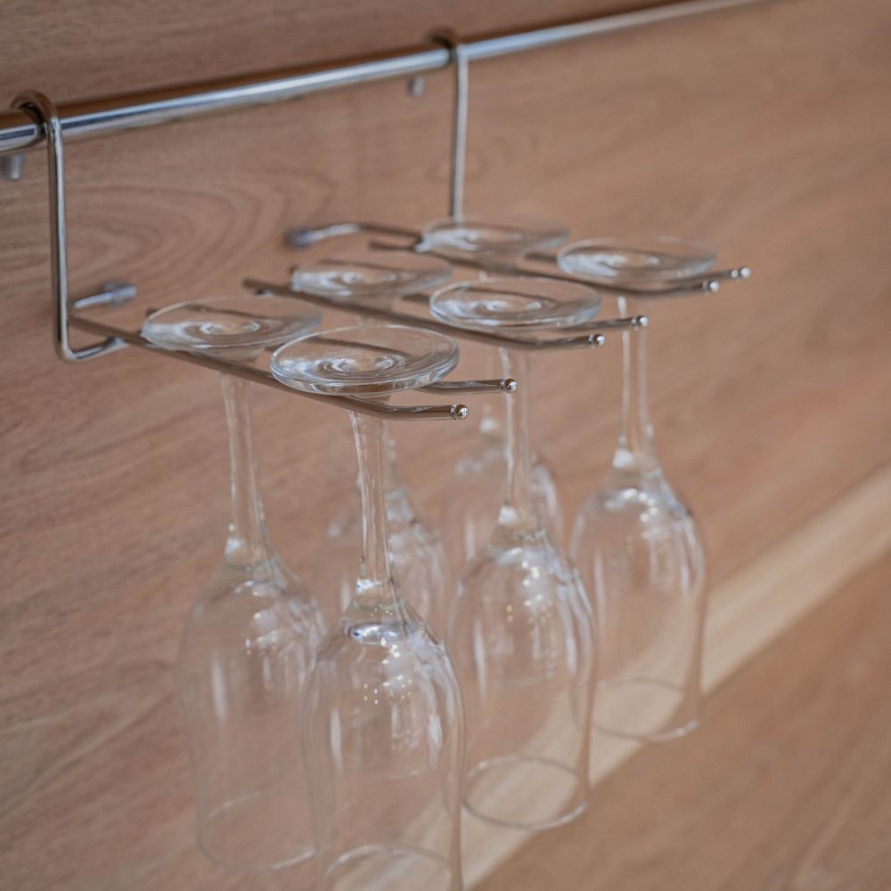 Навесная полка для фужеров - удобное и функциональное дополнение рейлинговой системы или домашнего бара. Идеальна для хранения и сушки большого количества фужеров.