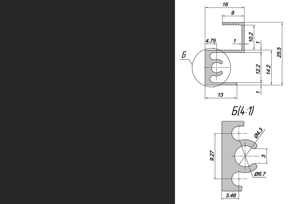 Профиль горизонт. верхний NS-14 Росла Черный мат.