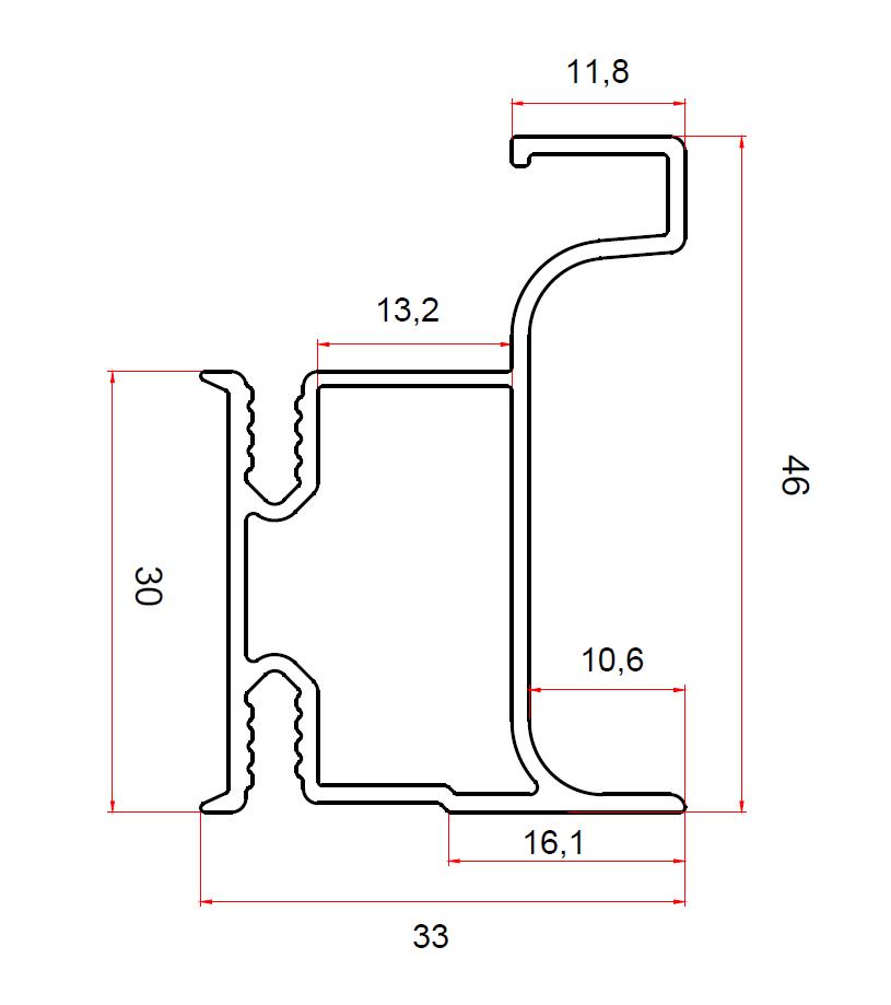 Профиль вертикальный боковой, алюминий анодир. с брашировкой 4700мм