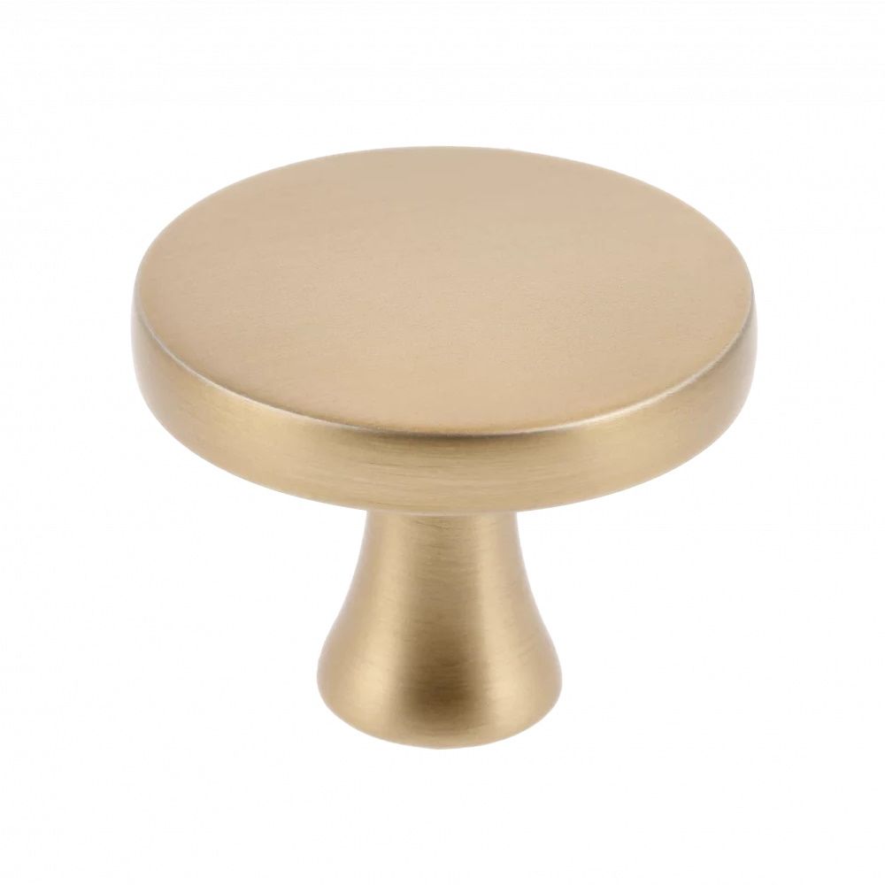 Ручка-кнопка GTV DUNE, выполненная в цвете позолоченной латуни, является изысканным элементом мебели. Ее уникальная форма кнопки с плоской шляпкой добавляет элегантности и стиля, делая её идеальным акцентом для шкафов, комодов и ящиков.