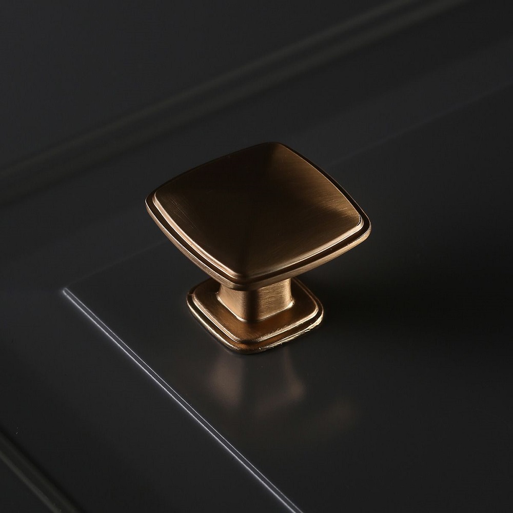 Ручка-кнопка GTV POINT, выполненная в брашированном золоте, является элегантным элементом мебельной фурнитуры, идеально подходящим для различных интерьеров.