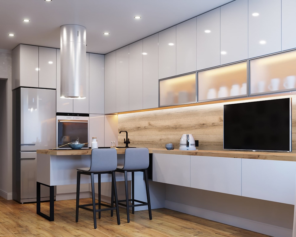 Стеновые панели уже давно заняли свою нишу в широком ассортименте комплектующих материалов для мебели. С их помощью можно замаскировать вентиляционные рукава, неудобные выступы, или сделать яркий акцент. Стеновые панели производятся на основе МДФ 4 и 6 мм, а также ДСП 10 мм класса эмиссии Е1. Для облицовки плит применяются бумажно-слоистые CPL и HPL пластики передовых европейских и российских компаний. МДФ является основным составляющим стеновых панелей. За счет ламинированного покрытия стеновые панели менее подвержены воздействию влаги и как следствие разбуханию, при соблюдении требований к монтажу и правилам эксплуатации. Ламинированная поверхность не позволяет накапливаться загрязнениям. Для ухода достаточно протирания влажной тряпочкой с использованием моющих средств без абразивных добавок. Не подвержены воздействию ультрафиолетовых лучей, проще говоря – не выгорают на солнце. В отличие от других способов оформления фартука или просто стены, установить стеновую панель можно самостоятельно.