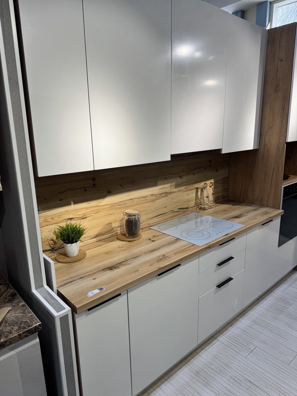 Светлый и солнечный Тирольский Бук позволяет проявить фантазию в выборе фасадов и корпусов кухни, добавить яркие аксессуары, наполнив интерьер индивидуальностью.