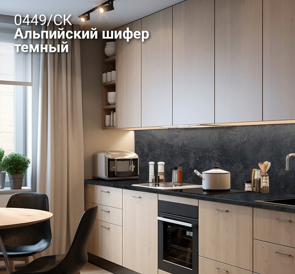 Столешница 3050x600x40 1U 0449 Альпийский шифер тем //2 обладает влагостойким слоем, который обеспечивает надежную защиту от разбухания столешницы при частом контакте с водой, благодаря качественной герметизации. Столешницы устойчивы к различным бытовым химиям, чернилам, пищевым кислотам и ультрафиолетовому излучению, что сохраняет их внешний вид и функциональность. Также они обладают высокой стойкостью к механическим повреждениям, таким как царапины и сколы и выдерживают высокие температуры без образования следов от горячей посуды.