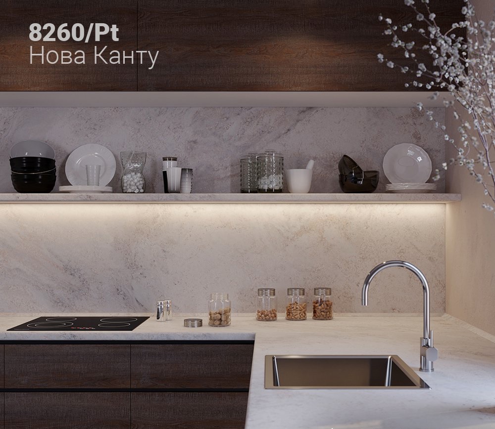 Столешница 3050x600x40 1U 8260 Нова Канту //5 обладает влагостойким слоем, который обеспечивает надежную защиту от разбухания столешницы при частом контакте с водой, благодаря качественной герметизации. Столешницы устойчивы к различным бытовым химиям, чернилам, пищевым кислотам и ультрафиолетовому излучению, что сохраняет их внешний вид и функциональность. Также они обладают высокой стойкостью к механическим повреждениям, таким как царапины и сколы и выдерживают высокие температуры без образования следов от горячей посуды.