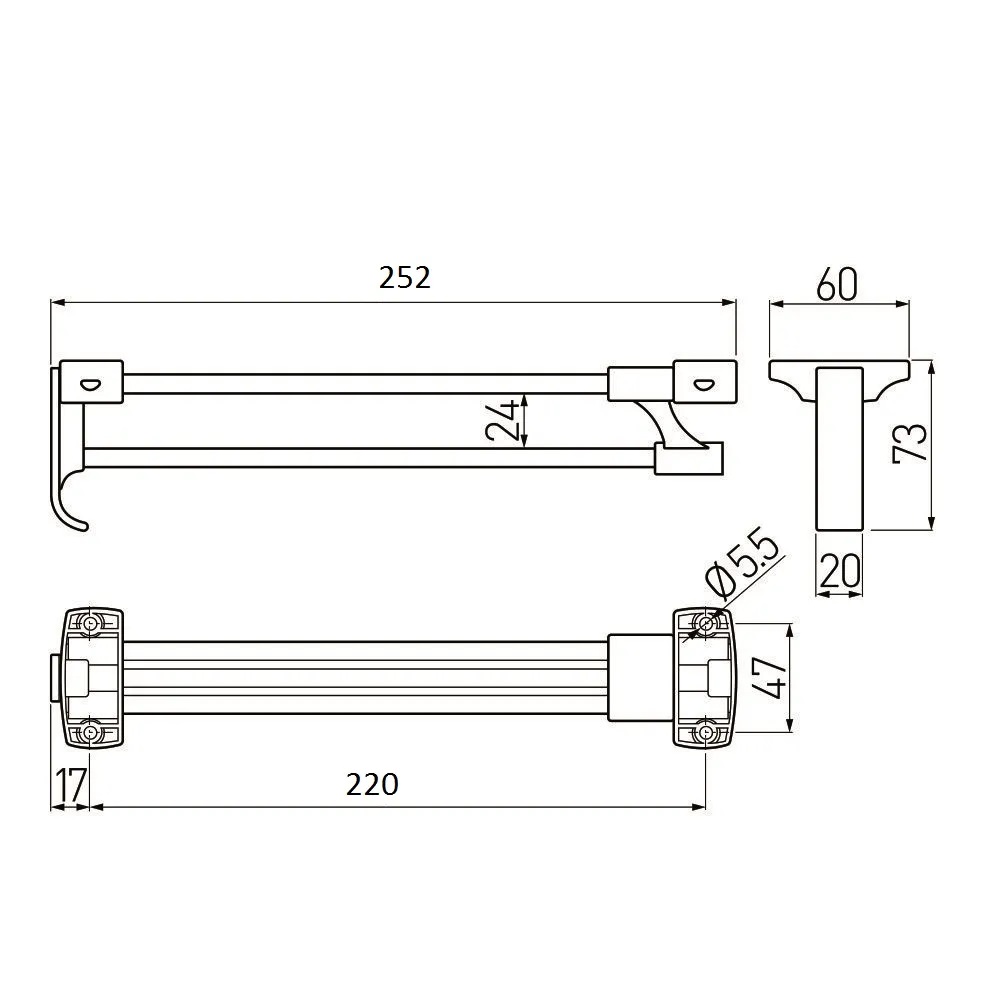 Данный товар имеет габаритный размер 252 мм в задвинутом состоянии, а длина выдвижной части составляет 220 мм. Это делает вешалку GTV особенно удобной для использования в небольших шкафах, так как она занимает минимальное пространство, когда не используется.